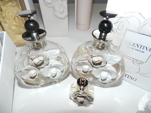 The couture bottle is inspired by feminine shapes and curves with white, ivory and nude couture flowers (emblems of Valentino couture) and a refined signature cap of a silver ring and black cap. Its described as an “Italian Floral Oriental” fragrance with the following notes:-