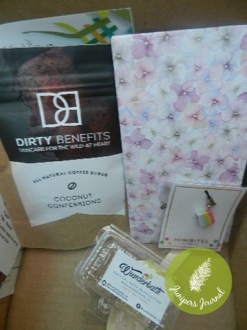 Just received this month’s Cube Crate box and there’s something useful for my shower. I always look forward to any products I can use in the shower as these are products I use every day. In Cube Crate July Box, there is a keychain from Minibites and a packet of All Natural Coffee Scrub from Dirty Benefits.