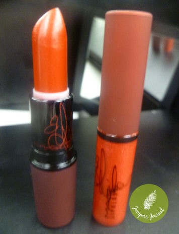 The lipstick is a blue-red and appears redder than in the image above where it looks like an orange-red. I liked the lipglass more than the lipstick as it’s so pigmented and glossy without being in the least sticky, love the worn together. It looks completely different when the lipglass is applied over the lipstick.