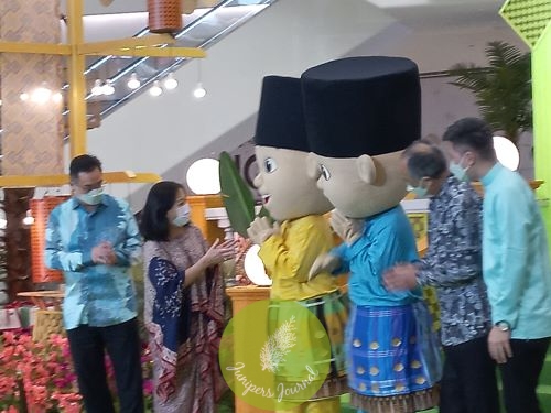 The festive decoration features several rustic traditional gazebos strewn with colourful batik, festive lights and palm trees set up to create a welcoming atmosphere for all shoppers this Raya.