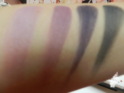 It was easier to swatch the shadows in the Spoiled Rich Palette although I prefer the shades in the Caramel Sundae Palette which are more wearable on a daily basis. Unless you like purple and dark shades, you would not go for the Spoiled Rich Palette. In each palette are 2 frosts, 1 satin and 1 matte texture shadow. I think I would need a primer to get the Caramel Sundae Palette colours to show up. Anyway, I happen to have both palettes so I should review!