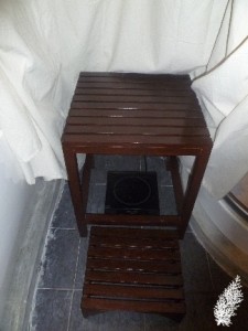 When I arrived for my appointment, I was asked to have a shower in the shower cubicle next to the herbal steam sauna. After that, I put on disposable bra and panties and sat on the wooden bench in the sauna. Lavender and chamomile had been mixed with the Kangen water in the basin underneath the stool which was being heated by an element.