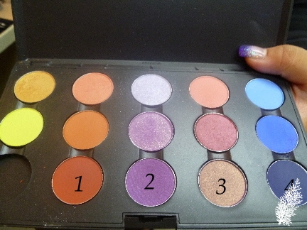 To begin, Haritha sprays on Fix Plus followed by Studio Sculpt Foundation NC15, set with Prep + Prime Powder. Studio Sculpt Foundation in NC50 is used to contour the face. There are 4 primary eyeshadow colours used (please see pic above, marked by numbers 1-4):-