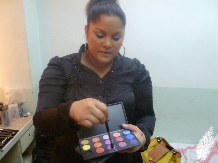 Knock, knock! As part of my backstage tour of Istana Budaya recently, I stopped by Stephanie Van Driesen’s a.k.a. Betty of “The Secret Life Of Nora” dressing room where she was having her make-up done by M.A.C. Cosmetic’s Senior Makeup Artist, Haritha Shan.