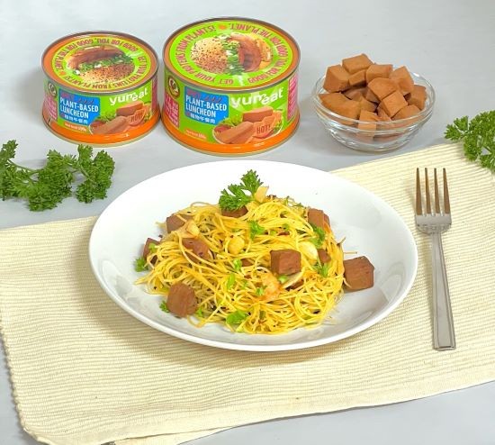 For those who prefer spicy, Plant-based Luncheon Aglio Olio can be your pick. Saute garlic until fragrant. Add in diced yumeat™ plant-based spicy luncheon meat, chilli flakes, ground black pepper and parsley. Cook for 3 to 4 minutes before adding in the boiled angel hair. Season to taste and serve. Visit www. yumeat.com and try out some of the delicious and sustainable options! From plant-based minced meat porridge to Japanese curry and Popiah.