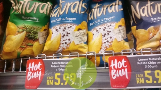 The second pack I bought was rosemary and that one is quite outstanding. All the chips contain sunflower oil. I finished the packs in one sitting all by myself. I am really addicted to these. The first weekend I went to Cold Storage, the chips were above RM7, second weekend they had a promo and the chips were below RM7. However when I went to De Market in Taman Desa yesterday, these chips were RM5.99. That’s the lowest price for these chips I have seen so far. So tempted to get a few more packs at that price.
