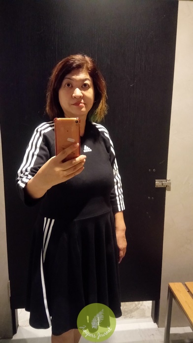 The moment I set eyes on Adidas 3-Stripes Dress yesterday, it was love at first sight. This little black dress ticks all the right boxes as it’s chic, sporty, comfortable and you can wear it to casual and not-so-casual functions. The material is thick enough to be worn in colder climates than here. The skirt has pleats which aren’t so evident when you hold it up but it’s evident when you wear it. I love the bottom half of the dress. The top half doesn’t have a zip at the back so you have to pull it over your head. It’s quite a snug fit.