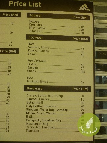 Prices are very reasonable as nothing is above RM109 and t-shirts (even Adidas Originals) are RM30.