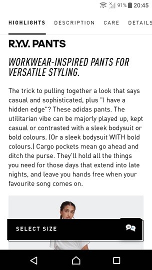 Generally when I try on something in changing rooms, I don’t take selfies but this particular pair of Adidas pants was too good not to take selfies. The fabric is so soft and comfortable and I think it has a slimming effect or so I would like to think. The pants have 4 pockets in front which is very useful and practical as I don’t often use handbags especially if I am outdoors (don’t want to be a snatch theft victim).
