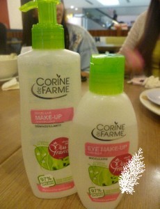 I’m told that the brand was founded way back in 1930 and as you can guess, it is from France where there are a lot of really superb drugstore brands such as Caudalie , Avene, Vichy and NUXE. Corine de Farme is always at least 95% natural and you can see just what percentage natural they are just by looking at the boxes and in front of the products, no having to search the back of the box or product for the percentage. The products don’t contain any colorants, parabens, phenoxyethanol or alcohol.