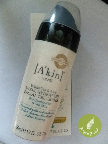 Most of my moisturisers have quite a rich and thick texture which do benefit my dry skin but sometimes I like using a lighter moisturizer which doesn’t compromise on the hydration factor. One such lighter textured moisturiser is A’kin White Tea & Aloe Vital Hydration Facial Gel Crème which is actually for combination and oily skin types.
