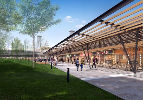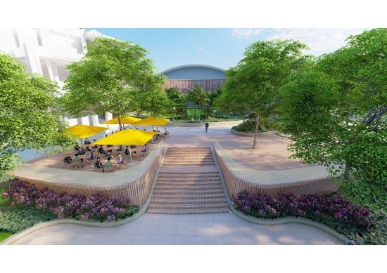 This redevelopment project will bring about captivating enhancements to the mall’s landscaping and overall design. At the rear of the Alamanda picture a lush lawn surrounded by planters with built-in seating, creating a welcoming gathering space. Mature trees will offer shade with new activity decks built over the upper steps offering unobstructed views to the lake.