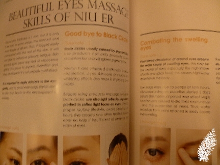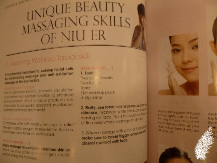 The skincare section is impressive, so detailed and comprehensive. It contains instructions on how to take care of different types of skins. As you browse through, it seems like nothing is left out. There’s a step-by-step guide on massage techniques.