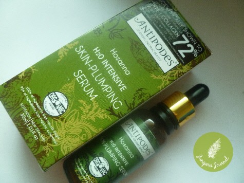 Antipodes Hosanna H2O Intensive Skin-Plumping Serum is a water-charged and oil-free bioactive serum which contains some interesting ingredients such as sauvignon blanc grapes which have antioxidant properties, extract of mamaku black fern to help foster cell renewal and essential oil fragrances of French rose oil and cardamom.
