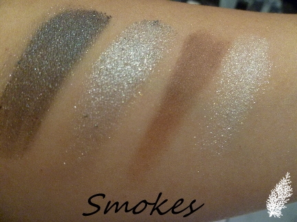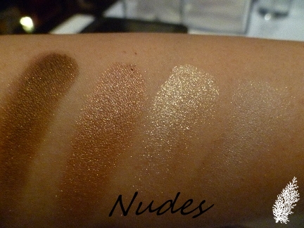There are 3 beautiful eye shadow palettes from Josie Maran Cosmetics. When I swatched them, I fell in love instantly as they have fantastic color pay-off and are so incredibly pigmented. I only had time for a cursory look (so cursory that I only swatched the eye shadows and not the shadow liner) but made a mental note to check them out more thoroughly once I see them at Sephora.