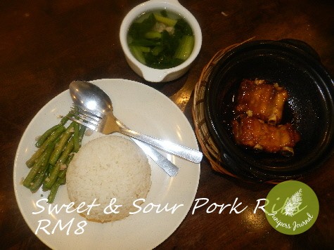 A generous plate of rice with stir fried long beans, a bowl of vegetable soup and a steaming hot pot containing 3 big pieces of lemongrass chicken for RM8. That screams value for money. I found the chicken a bit dry and it could have been slightly more tender but the sauce is great with rice.