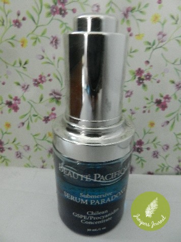 Beaute Pacifique Submersive Serum Paradoxe is based on new medical discoveries relating to a sophisticated Chilean Grape Seed Extract (GSPE). These grapes are grown at hill sides in the Andes mountain where the UV-radiation is very severe. During the evolution, these special grapes have adapted to the extreme UV-exposure and secured survival of the genes. The grapes have developed their own defense against free radicals built on high contents of the two active anti-oxidative substances, resveratrol and Procyanidin.