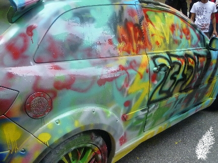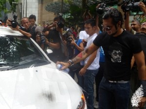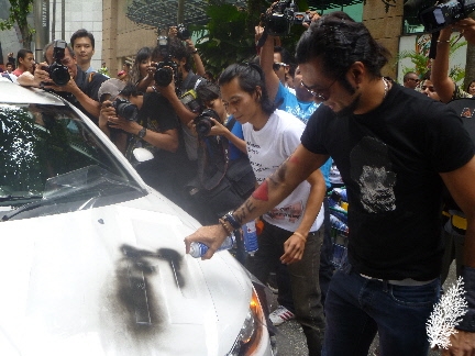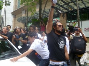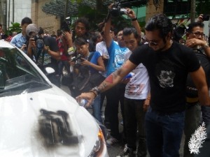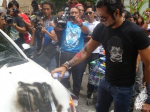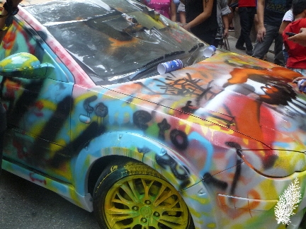 Everyone was waiting for Bernard Chandran to make his grand entrance and it was quite an entrance as he turned up in a Proton Satria Neo with the number plate “Area 27”. He proceeded to splash paint over the car, transforming it into an art piece. He was then joined by renowned graffiti artist Bob from Kioue Super Sunday in unlocking a festival of street art in the open.