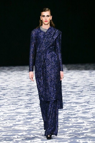 Apart from the interesting fabric combinations and fused colour palettes, the master of design and cut gave us a cohesive and glamourous collection that never failed to impress. Innovative easy silhouettes were further emblazoned with intricate beading, rich embellishments and eye-catching sequins whilst sophisticated cut skirts including one-sided back flipped and box pleated fluid trains that spread into a natural uplifting flare at the edges.