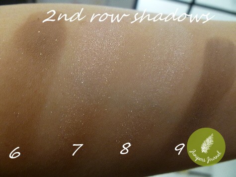 The first thought that came to my mind when I swatched the shadows was how very sheer they were. I thought I’d definitely need an eye primer if I applied these shadows but I’ll give them the benefit of the doubt since I didn’t apply them on my lids. However, I do wonder how they’d look on darker skin tones. I can see the shimmer in some of the shadows, just not much colour pay-off.