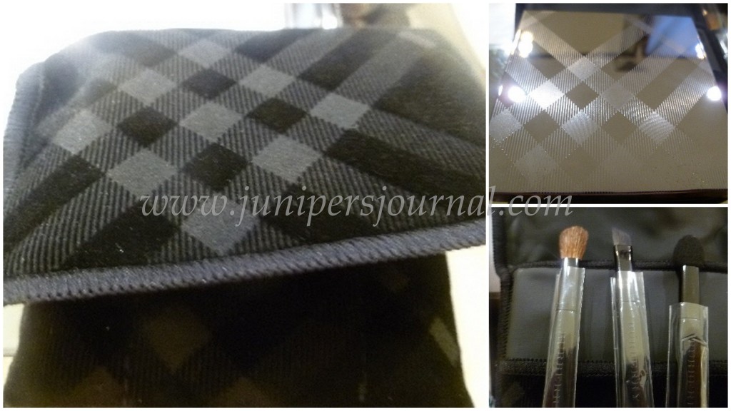 Each palette contains an illuminating base, two blendable shades to add structure, and a liner to define and enrich. The palettes are housed in the signature Burberry Beauty pouch with the iconic Burberry check and the compact is sleek in gunmetal. The magnetic lid also features the iconic Burberry check. There are three different applicators – one for blending, depositing the eye shadows and a slanted liner brush. These are quality applicators as befits the brand.