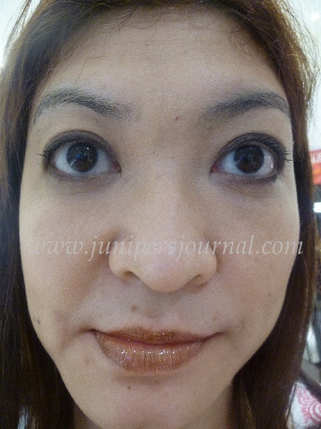 Here’s what the shades in Pink Taupe No. 7 Palette looks like on me thanks to Burberry Beauty’s Trainer, Adrian Sin. On my lips is Lip Glow in Vintage Gold. Adrian used the lightest shade as highlighter followed by the 2nd & 3rd shades (the middle shades) layered over each other and the darkest shade as eye liner. The look is smoky yet not too smoky for day.