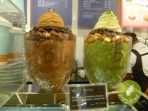 Now I haven’t had a proper ice kacang for some time. Caffe Bene offers “bingsu” or the Korean version of ice kacang with red beans and high quality nuts such as macadamias and almond slivers. The “bingsu” comes in single or double with the singles costing RM12.80 and the double over RM20 but the single is quite huge and can satisfy the cravings of 2 persons unless you really don’t want to share. You can choose between flavours such as cookies and cream, strawberry, green tea and chocolate.