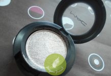 MAC Dazzleshadow She Sparkles is a light gray with silver sparkles, it’s very pigmented and this one has minimal fall-out. The formula is talc-free and colour pay-off is very good,…
