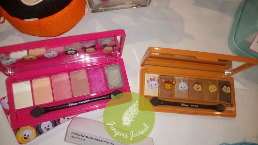 The palettes have a myriad of cartoon characters on the case. However the pigments of the eyeshadows could be stronger. The rose palette eyeshadows showed up on my skin better than the gold/brown palette. All I can see are shimmer on the brown eyeshadows. I think that the price of the eyeshadow palettes are quite high for the quality.