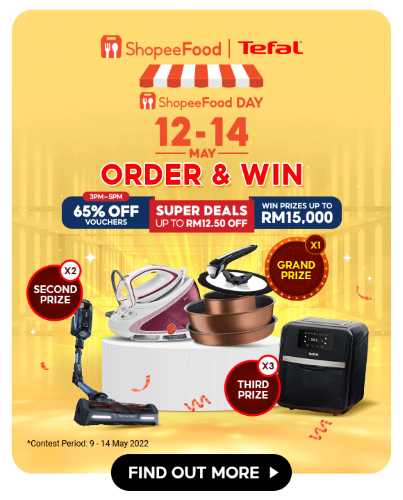 That’s not all – with every minimum RM25 spent on ShopeeFood, stand a chance to walk home with exciting prizes such as Tefal cookware and small appliances worth RM15,000 from the Order & Win Contest. Here’s how to participate and win mom something exciting: