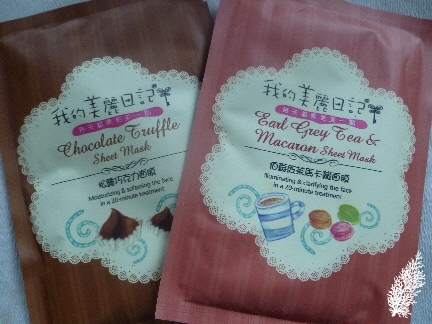 These were the 2 sheet masks in My Beauty Diary’s Mini Teatime Set. The diagrams and colour on the packaging is quite different from the regular MBD sheet mask as these depict chocolate truffles, tea and macarons. It’s taken me a long time to open them up as they were just too pretty.