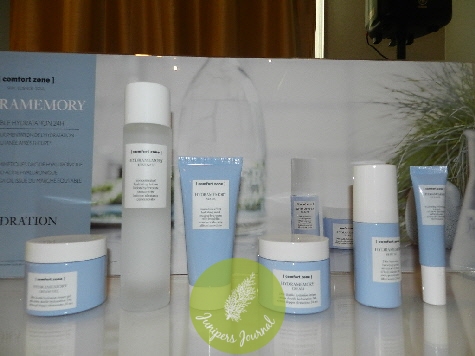 The [ comfort zone ] Hydramemory system comprises an essence, eye gel and a mask, along with a serum, cream gel and cream.
