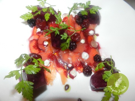 My 1st starter was Homemade Hickory Smoked Salmon @ RM18 with roasted beetroot, anise yoghurt, marinated dark berries, like gel and turmeric vinaigrette. There were diverse flavours here from sweet to sour to bitter.