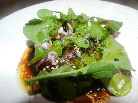 My food blogger friend, Nava K had the Charcoal Grilled Avocado & Calamari Salad @ RM20 glazed with sweet soy and served with squid ink puree, crispy salt beef and herbs. This one was very nice as the squid wasn’t chewy and the sprinkling of sesame seeds gave it a little crunchy texture.