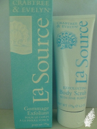 Crabtree & Evelyn La Source products are blended with restorative mineral salts and nutrient-rich seaweeds. The light blue box with white text gives the impression that the product inside is for hydration.  This is a creamy body scrub blended with fine pumice, refreshing peppermint and emollient oils.