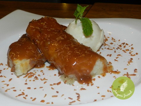 The dessert list may not be very long or should I put it another way, not as long as their main courses but they have desserts you probably won’t find anywhere else. All their ice creams are home made. One of them is the Coconut Ice Cream & Sticky Rice Filo @ RM16 which is premium coconut ice cream from pure coconut milk (indeed you can taste just how much coconut is in this ice cream) served with sticky glutinous rice wrapped in filo pastry and baked. The slightly crunchy exterior of the filo pastry contrasted nicely and perfectly with the soft contents which is the sticky glutinous rice. If you love coconut, this is a MUST-HAVE dessert.