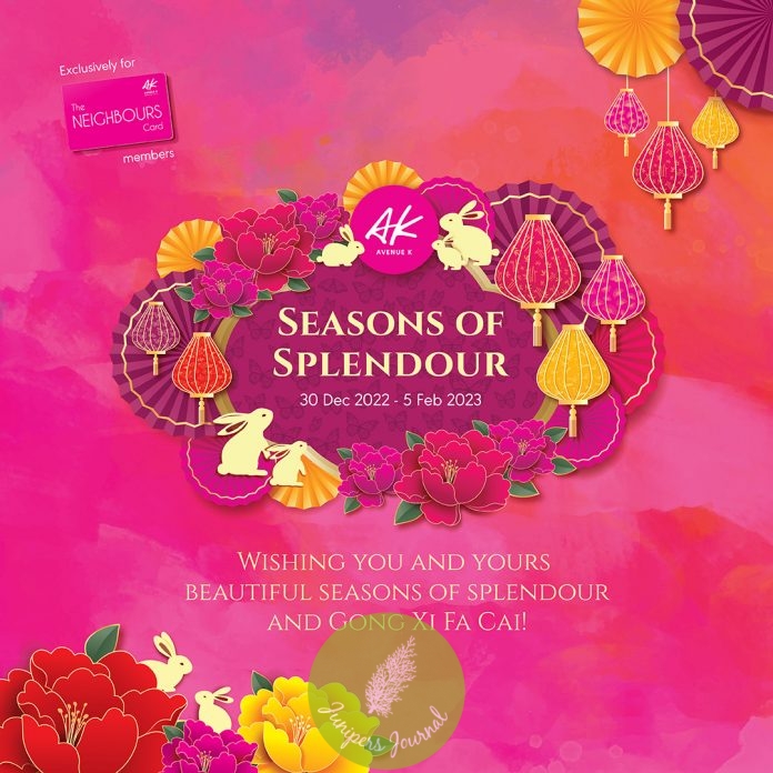 Usher in a stylish new beginning this Chinese New Year with Avenue K Shopping Mall from 30th December 2022 to 5th February 2023. The theme this year, Seasons of Splendour unleashes the vibrant colours of spring that embody the richness and beauty of Chinese culture. Auspicious red, bold pink, and opulent purple transform the Atrium into a jewellery box of colourful treasures waiting to be discovered. Giant blooming peonies blossom in all their glory, inspiring positive vibes of happiness, hope, and harmony. Row upon row of elegant and luminous lanterns create a ceiling of lights that brighten up the atmosphere for a truly captivating experience. Giant rabbit arches frame the walkway while two 3D rabbits at the main entrance warmly welcome the Year of the Rabbit which represents longevity, peace, and prosperity.