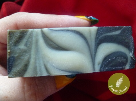 Earth Care Seaweed Charcoal Cold Process Soap is a deep cleansing soap, it’s rather lovely with an imprint of a dove and the word “Handmade”. Great for oily skins because of the purifying bamboo charcoal.