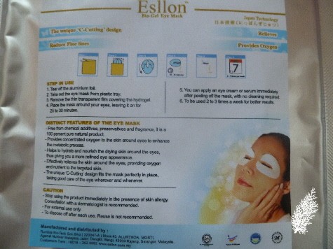 Esllon Bio-Gel Eye Mask actually comes in a box of 5 aluminium foil sachets @ RM59 and there was a sachet in this month’s MIVVA box. This eye mask has a ‘C-Cutting’ design and the mask adheres to the upper eyelids as well as the under-eye area.