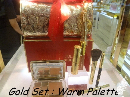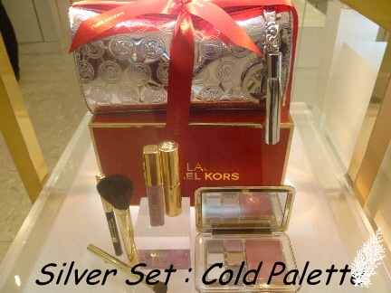 The Michael Kors for Estee Lauder sets are RM200 with a purchase of RM250. They contain a choice of gold, silver or bronze bags, eyeshadow/blush palette (warm/cold/intense), Pure Colour Long Lasting Lipstick, Pure Colour Gloss, Double Wear Stay Pencil, Eyeshadow Brush and a Blush Brush.