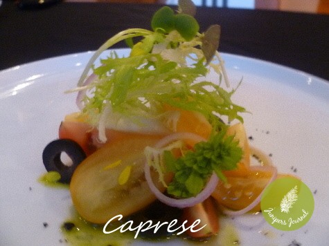 This is a salad to whet your appetite, very light yet refreshing with plenty of tomatoes. There’s fresh buffalo smoked mozzarella cheese, Highland tomatoes, onion, basil, olive powder, pesto and extra virgin oil.