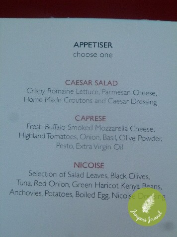 Okay, so we have 3 choices each for Appetiser, Main and Dessert (menu subject to change).
