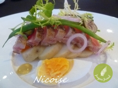 Nicoise is a selection of salad leaves, black olives, tuna, red onion, green haricot Kenya beans, anchovies, potatoes, boiled egg with Nicoise dressing. Phew! That’s quite a lot of ingredients in one salad. Tuna was very fresh but I can’t really say I liked this one as I am not a fan of tuna. Generally, I avoid anything with tuna in it.