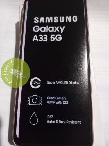 Unboxing the A33, the phone has a plastic sleeve over it with a brief description of some of the features – Super AMOLED Display, Quad Camera 48MP with OIS, Water & Dust Resistant.