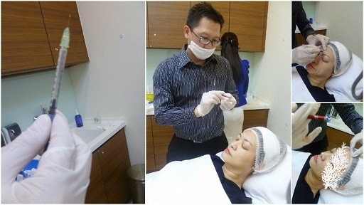 First, the Botox was injected. As you can see, the needle is very fine. The first shot gave me a bit of a jolt even though Dr. Wong prepared me for every shot. I won’t say it’s completely pain-free as I can feel the needle making its way into my flesh and there is a pressure for a few seconds as the needle dispenses the Botox. However, I kind of got more used to it, as much as one can get used to getting injected.
