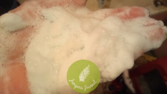 The foam comes out of the tube blue and turns into white foam upon combining with water. There’s a fair amount of foam which I like. It is gentle on skin yet5 does a good job of removing make-up and everything else as promised. Good cleanser which I would recommend to anyone looking for a reasonably priced/highly affordable/performing cleanser.