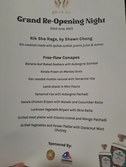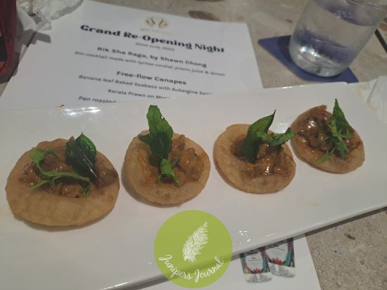 Reading the Grand Re-Opening Menu on my table, it was a long list of what must surely be delectable modern Indian food, all served canape size so that we could have a taste of everything. It was free flow of canapes, we could request for more of what we liked which was basically everything but as I’d arrived with quite a full stomach, I didn’t have that much space to begin with. The Rik Sha Raga packed quite a punch for me, who isn’t a regular cocktail consumer. There’s a promo on at the moment where you get 1 Rik Sha Raga free with every purchase of the same.