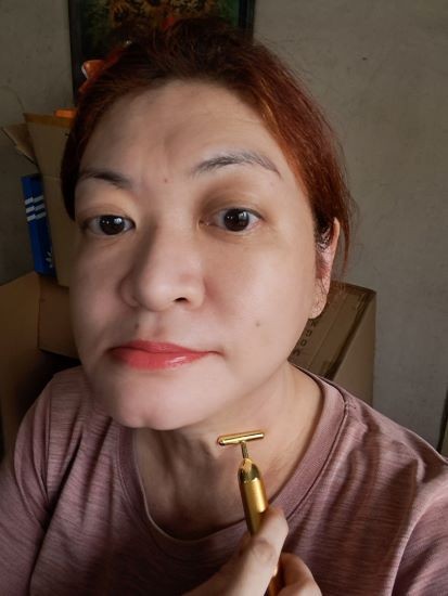 It has a golden streamlined appearance, waterproof design, electroplated gold ion massage head (T-bar). Benefits include reducing wrinkles, activate facial cells, promote blood circulation and skin radiance, firmness and elasticity. This is exactly what I need so I have been using it diligently since I received it on Saturday. It’s so easy to use as all you need is 1 AA Alkaline battery, turn it on by swiveling the base and massage all over the face and neck in upward and downward motions. It vibrates 6,000 times per minute.