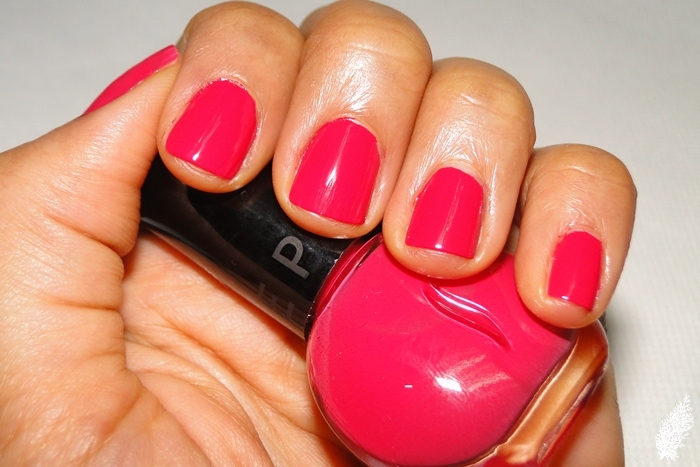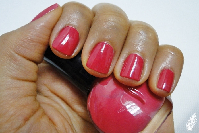 I’ve had Tropical Fuschia on for about 7 days now (with base and top coat) and I started noticing slight wear at the tips after 4 days. 7 days later, there’s noticeable wear at the tip with tiny bits chipping off. Then again with work, chores and loads of typing, colours usually last no more than a week on my nails.