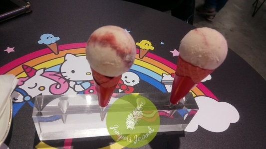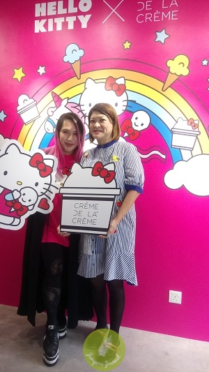 In between waiting for the ice creams to arrive at my table, I couldn’t resist taking selfie after selfie which I don’t normally do (honest!) as the wall behind me had the most colourful and big image of Hello Kitty. The whole place had been transformed into Hello Kitty Land.